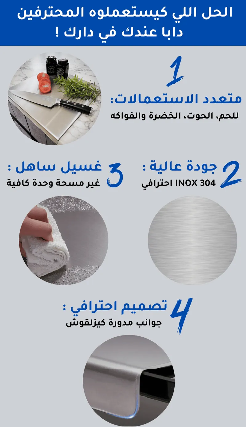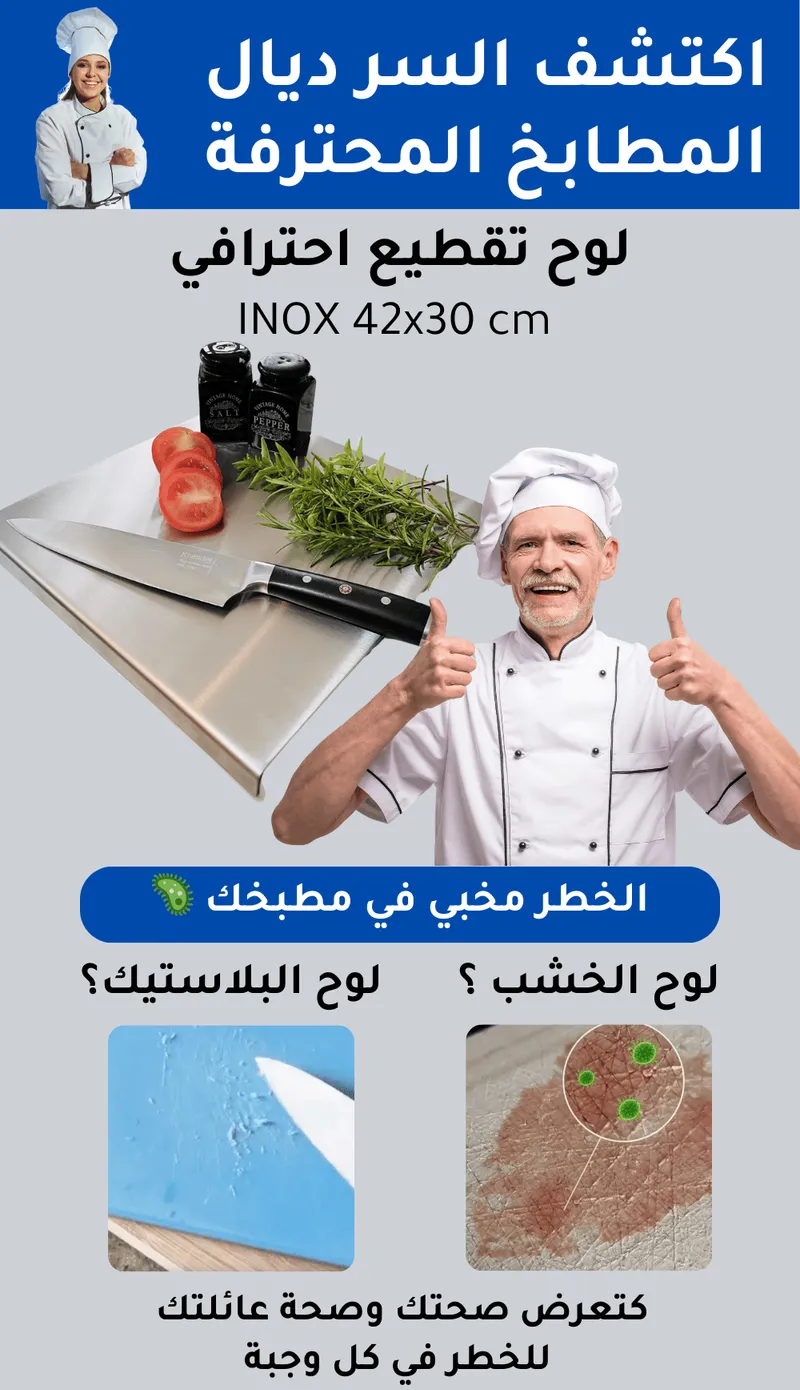لوح تقطيع احترافي من الفولاذ (INOX) المقاوم للصدأ و البكتيريا