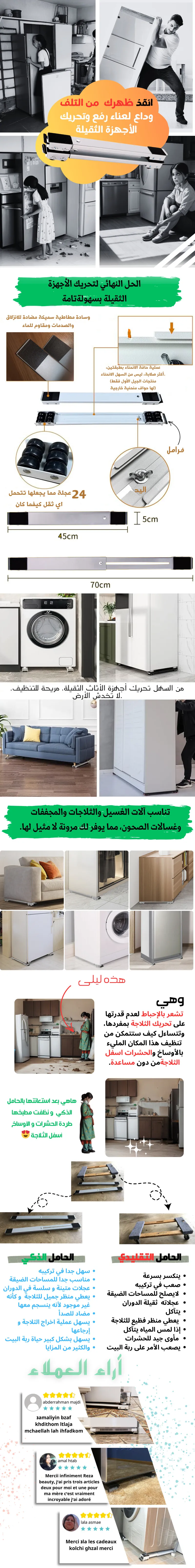 دعامة دوارة قابلة للتمديد للغسالة والثلاجة
